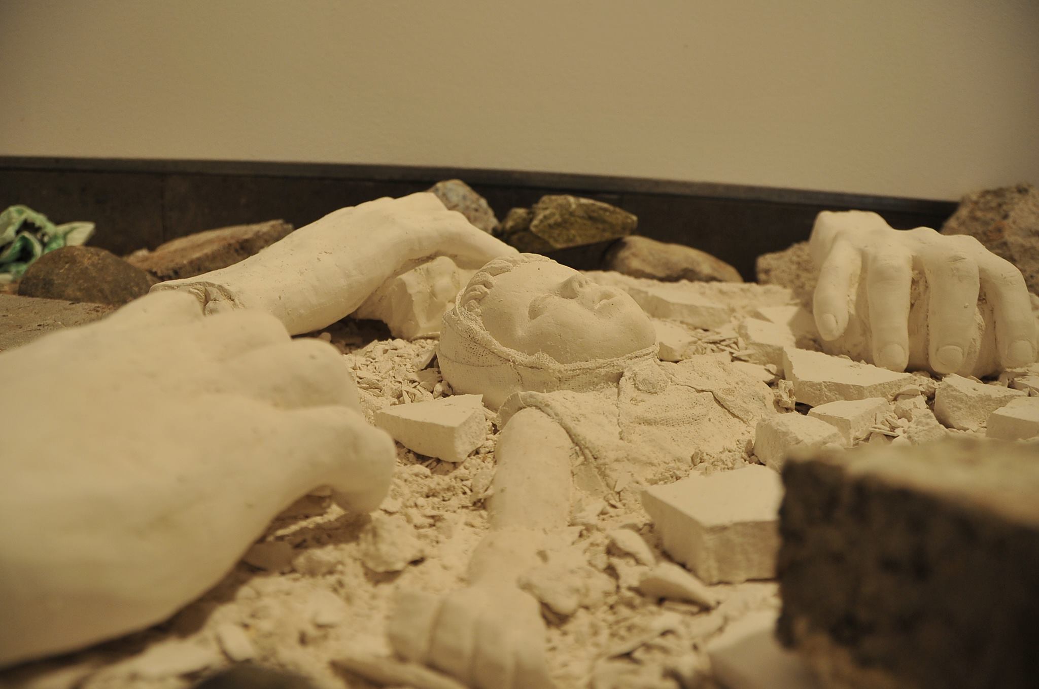 فشارك النحات وليد زينو بأعمال نحتية مختلفة عن الوضع السوري فمجسم الطفل المستشهد تحت اﻷنقاض و بقايا أعضاء من جثث الموتى وحطام والخراب من حجارة وتراب أعطت صورة واضحة بما يحدث اﻵن في سورية في ظل هذه الحرب المجنونة و انتشار ثقافة القتل بشكل يومي . وأيضا” طرح بعض المجسمات و البورترهات لشخوص تصرخ أو تعاني من هذه المآسي اليومية .