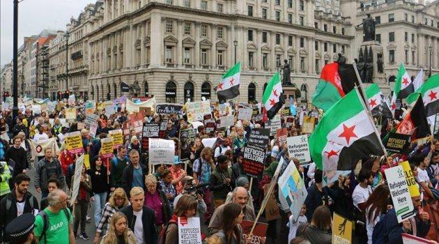 وختم البيان بالتذكير بقرار سابق للحكومة البريطانية حول اعتزامها استقبال 20 ألف لاجئ حتى عام 2020، اتخذته بعد مظاهرة مماثلة شهدتها لندن، العام الماضي، بمشاركة الآلاف .