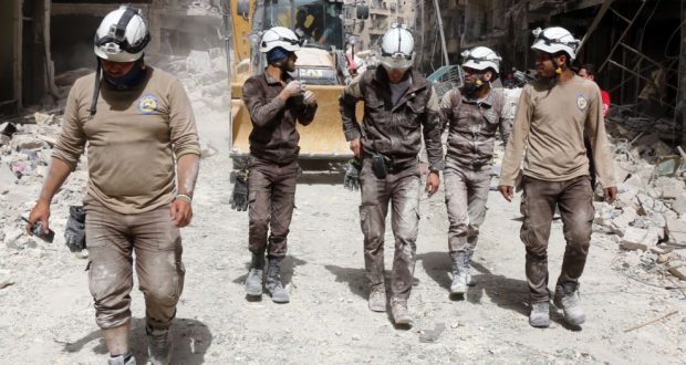 الخوذ البيضاء جماعة مدنية تطوعية تشكلت في عام 2013، على خلفية الحاجة لمواجهة تداعيات الصراع المسلح، وغارات الطيران على المدن والقرى السورية الخارجة عن سيطرة النظام وجماعات الإرهاب، وضمت بين صفوفها فئات مختلفة من السوريين، عمالاً وحرفيين وطلبة ومهندسين وعاطلين عن العمل، وغيرهم ممن أخذوا على عاتقهم مهمة مساعدة الناس على نحو ما هي عليه مهمة فرق الدفاع المدني المعروفة في العالم، الملتزمة بمبادئ منظمة الدفاع المدني الدولية في «الإنسانية والتكافل والحيادية» .
