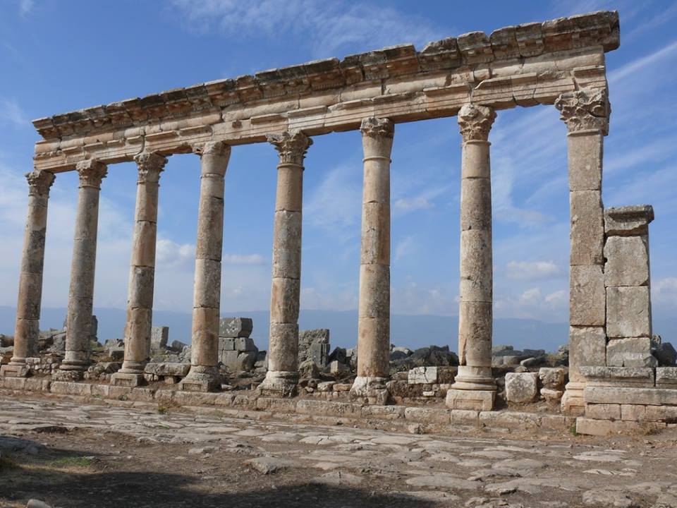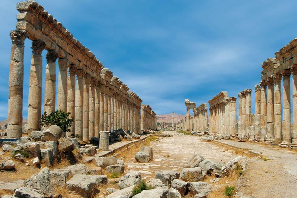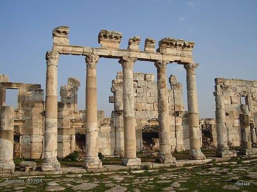 إلى الشمال الغربي من سورية، وفوق هضبة قليلة الارتفاع مطلة على سهل الغاب تتناثر أطلال مدينة أفاميا العابقة برائحة التاريخ، وذكريات شعوب كثيرة وطئت تخوم هذه المنطقة الناضحة بالجمال والاخضرار والنماء والبهاء السندسي، الذي وهبها إياها نهر مشاكس معاند هو نهر العاصي.مر فيها الفراعنة والسلوقيون، ومن بعدهم الرومان والبيزنطيون وغيرهم من أبناء الشعوب القديمة التي قطنت شرقي المتوسط خلال فترات التاريخ المتعاقبة. وظلت أفاميا واحة ينام فيها التاريخ وتصحو الأسطورة تذكرنا بحكاية الرسام الشرقي القديم المتفرد في فنه الذي رسم لوحة بديعة ثم ترك في صدر اللوحة بابا أبقاه مفتوحاً وحين أنهى عمله، وتأمله راقَ له أن يعبر الباب، ومن ثم أغلقه وراءه وغاب وراء اللوحة الفريدة، لتبقى هي أمانة في عهدة المستقبل . تُرى هل كان ( سلوقس نيكاتور )، أحد قادة الاسكندر المقدوني يعلم أن مدينته السحرية الرائعة هذه ستظل قلادة على صدر الزمان بعد أكثر من ألفي عام، حينما منحها اسم أفاميا كرمى لعيني زوجته الأميرة الحسناء أفامي البختيارية ( التي تزوجها العام 324 قبل الميلاد ) .