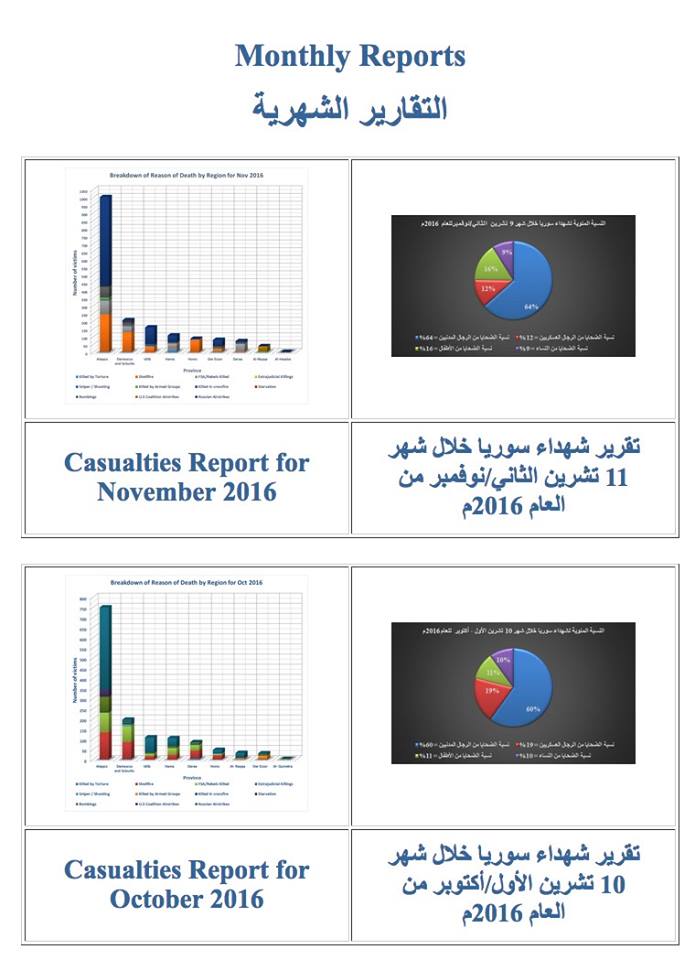 شهداء سورية خلال تشرين الثاني 2016 نشرت في:شؤؤن محلية - يناير 13, 20170 شهداء سورية خلال تشرين الثاني 2016 Share On Facebook Share On Twitter Share On Google+ Share On Pinterest