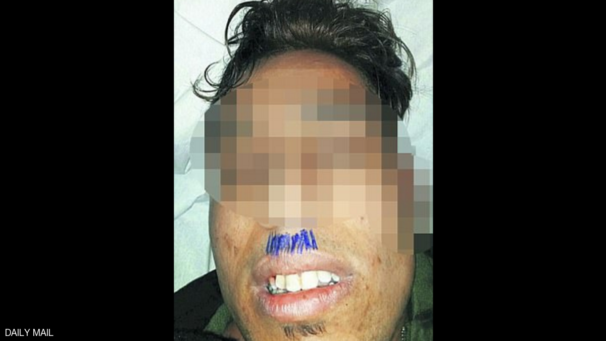 وظهر اللاجئ ممددا في وضعية خطأ داخل سيارة للإسعاف وقد رسم المسعف بالقلم الجاف شنبا صغيرا على وجهه يشبه شنب هتلر، وكتب تحتها:” الضحية رقم 1: شوارب عصرية”.