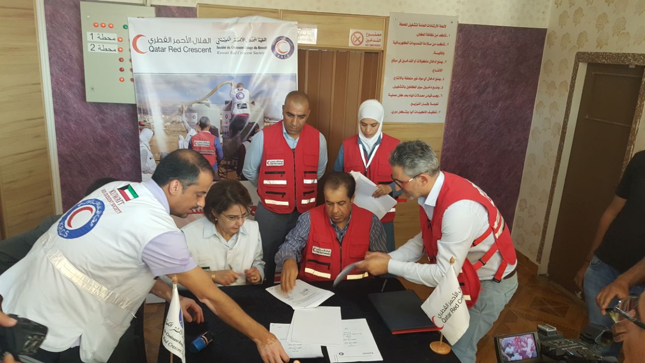 جرى توقيع الاتفاقيتين صباح اليوم (الجمعة) الموافق في 30 حزيران/يونيو 2017، في محطة تكرير المياه، سعدنايل، وذلك في حضور المدير العام لشؤون الإغاثة والعلاقات العامة في الهلال الأحمر القطري السيد راشد سعد المهندي والأمينة العامة للهلال الأحمر الكويتي السيدة مها البرجس وممثلين عن الجمعيتين.
