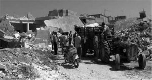 كما يثير النمطُ المكاني للتدمير على مناطق حضرية واسعة من أحياء مدنية، بعيداً عن مناطق القتال، من دون هدف عسكري مباشر، سؤالَ مكانة التدمير في سياسات الحرب التي يتبعها النظام. قد تكون بالفعل ترمي إلى تحويل سكان المناطق المستهدفة ضد مجموعات المعارضة المسلحة الناشطة محلياً، أو قد يُنظر إليها على أنها انتقام لدعمها المُفترض للمعارضة؛ وقد يكون كذلك بمثابة تحذير لسكان المناطق الخاضعة للنظام(19). وعلى أية حال فإنه يؤيد تشخيص القصف “العشوائي” للمناطق المأهولة بالسكان (وهو غير مشروع بموجب القانون الدولي الإنساني) كما أفادت “لجنة التحقيق الدولية المستقلة بشأن الجمهورية العربية السورية” التابعة للأمم المتحدة (2013،2014) والتي وثّقت انتهاكات للقوانين الدولية الإنسانية وجرائم حرب(20).