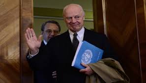 ﻳﺄﺗﻲ ﺫﻟﻚ، ﻓﻲ ﻭﻗﺖ ﺃﻛﺪﺕ ﻓﻴﻪ ﻣﺼﺎﺩﺭ ﻋﺪﺓ ﻭﺟﻮﺩ ﺿﻐﻮﻁ ﺩﺑﻠﻮﻣﺎﺳﻴﺔ ﻋﻠﻰ ﻭﻓﺪ ﺍﻟﻤﻌﺎﺭﺿﺔ ﻓﻲ ﺟﻨﻴﻒ ﻟـ ” ﺗﺠﻤﻴﺪ ” ﻣﻄﻠﺐ ﺗﻨﺤﻲ ﺑﺸﺎﺭ ﺍﻷﺳﺪ . ﻭﻛﺎﻥ ﺩﻱ ﻣﻴﺴﺘﻮﺭﺍ ﺣﺾ ﺍﻟﺨﻤﻴﺲ ﺍﻟﻮﻓﺪﻳﻦ ﻋﻠﻰ ” ﺍﻻﻧﺨﺮﺍﻁ ﺑﺠﺪﻳﺔ ﻓﻲ ( ﻧﻘﺎﺵ ) ﺍﻟﻨﻘﺎﻁ ﺍﻻﺛﻨﺘﻲ ﻋﺸﺮﺓ ” ﺍﻟﺘﻲ ﺳﻠّﻤﻬﺎ ﻟﻜﻞ ﻣﻨﻬﻤﺎ، ﺑﺎﻹﺿﺎﻓﺔ ﺍﻟﻰ ﻣﻮﺍﺻﻠﺔ ﺑﺤﺚ ” ﺍﻟﻌﻤﻠﻴﺔ ﺍﻟﺪﺳﺘﻮﺭﻳﺔ ﻭﺇﺟﺮﺍﺀ ﺍﻧﺘﺨﺎﺑﺎﺕ ﺑﺈﺷﺮﺍﻑ ﺍﻷﻣﻢ ﺍﻟﻤﺘﺤﺪﺓ .” ﻭﺃﻋﻠﻦ ﺃﻧﻪ ﻓﻲ ﺍﻟﻤﺮﺣﻠﺔ ﺍﻟﻤﻘﺒﻠﺔ ” ﺳﻨﻘﻴّﻢ ﺳﻠﻮﻙ ﻛﻼ ﺍﻟﻄﺮﻓﻴﻦ، ﺍﻟﺤﻜﻮﻣﺔ ﻭﺍﻟﻤﻌﺎﺭﺿﺔ ﻓﻲ ﺟﻨﻴﻒ ” ، ﻭﺣﺬﺭ ﻣﻦ ﺃﻧﻪ ﻓﻲ ﺣﺎﻝ ﺗﺒﻴّﻦ ﺃﻥ ﺃﺣﺪ ﺍﻟﻄﺮﻓﻴﻦ ” ﻳﻌﻤﻞ ﺑﺤﻜﻢ ﺍﻷﻣﺮ ﺍﻟﻮﺍﻗﻊ ﻋﻠﻰ ﺗﺨﺮﻳﺐ ﺍﻟﻌﻤﻠﻴﺔ ( ﺍﻟﺴﻴﺎﺳﻴﺔ ) ﻭﺗﻘﺪﻡ ( ﻣﺤﺎﺩﺛﺎﺕ ) ﺟﻨﻴﻒ، ﻓﺴﻴﻜﻮﻥ ﻟﺬﻟﻚ ﺃﺛﺮ ﺳﻴﺊ ﺟﺪﺍً ﻋﻠﻰ ﺃﻱ ﻣﺤﺎﻭﻟﺔ ﺳﻴﺎﺳﻴﺔ ﺃﺧﺮﻯ ﻓﻲ ﺃﻱ ﻣﻜﺎﻥ ﺁﺧﺮ ﻹﺟﺮﺍﺀ ﻋﻤﻠﻴﺎﺕ ” ﻣﺸﺎﺑﻬﺔ ﻟﺠﻨﻴﻒ .