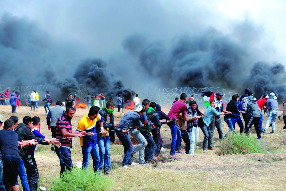 الفلسطينيون يجتازون الحدود خلال «مسيرة العودة»