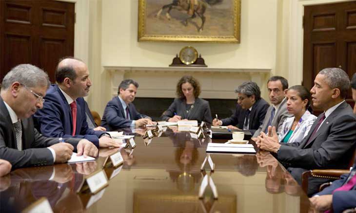 في قراءة أخرى، هذه الفقرة لا تأتي بجديد إلا عند الحمقى إياهم، ثمّ عند بعض شرائح «المعارضة» السورية الخارجية، الإسطنبولية إجمالاً، وتلك الجيوب الصغيرة البائسة في الولايات المتحدة وأوروبا، ممّن آمنت بأنّ سقوط النظام على أيدي أوباما بات قاب قوسين أو أدنى؛ وأنّ وضع جميع بيوض هذه «المعارضة» في السلّة الأمريكية، وحتى عبر استطالات سعودية هنا أو تركية هناك، هو الخيار المنطقي الأوّل. بذلك كان فريق البنتاغون، كما يوضح إكسوم في إفادته، يوافق الروس على استئصال المعارضة السورية الداخلية، المدينية العلمانية والإسلامية المعتدلة؛ وفي الآن ذاته يستقبلهم في البيت الأبيض أو وزارة الخارجية، أي يواصل الضحك على عقولهم وذرّ الرماد في أعينهم. هذه، على سبيل المثال فقط، حال اجتماع مستشارة أوباما للأمن القومي، سوزان رايس، مع وفد الائتلاف، برئاسة أحمد الجربا، وعضوية نجيب الغضبان واللواء عبد الإله البشير وميشيل كيلو؛ وكيف فاجأ أوباما الحضور بالانضمام إلى الاجتماع، والتصريح بأنّ «الأسد فقد كلّ شرعية لقيادة سوريا، وليس له مكان في مستقبل البلاد».