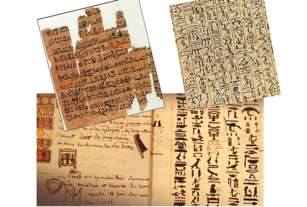 ويوضح وترى بالفعل كيف صارت صور الحروف الهيروغليفة حروفا عربية في الشكل، مثل صورة الشين والسين والخاء والحاء والباء والألف وغيرها، مما يحتاج إلى نقل الرسم الهيروغليفي وهو صعب في المقال، وعلى من يريد التقصي أن يقرأ الكتاب حتي يصل إلى حروف التهجي في القرآن الكريم، أو الحروف المتصلة أو المقطعة مثل «ألم» ألف لام ميم، أو «كهيعص» كاف هاء ياء عين صاد، في بداية الصور أو «ن» أو «ق» أو «ص» وغيرها، ويتفق كثيرا مع اختلاف الفقهاء في رمزيتها ومعناها، ثم يأتي بصور الحروف المصرية القديمة، فيجد علاقة وثيقة بينها وشكل الحرف العربي، فالألف كانت صورته الهيروغليفية هي القلم، واللام كف اليد التي تقوم بالكتابة والميم وهو الحرف الأخير في «ألم» يشير في صورته المصرية القديمة إلى الكتاب وورق البردي أما «ن» التي كانت صورتها المصرية إناء فخاريا مستديرا، وكانت تنطق «النو». أما «ق» فصورتها القديمة علامة «الكا» التي كانت تعني الروح أما ال «ص» وال «ض « فهي العلامة المصرية القديمة التي كانت على شكل بطة أو طائر يشبهها. هكذا يستمر في حروف متصلة أخرى مثل «المص» و«طسم» وكلها ذات دلالات غير التي شاعت، فهي أقرب بالقسم بما تشير إليه الرسوم القديمة المصرية، وكلها تؤكد على عظمة الكتاب المبين. وفي النهاية يتضح للقارئ سر انتقال المصريين إلى اللغة العربية، التي لم تكن بعيدة عن لغاتهم القديمة بل جاءت منها.