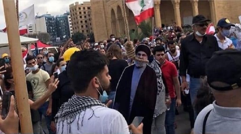لكنْ نصر الله الجبّار، نصر الله الذي، بسلاحه وجيشه، يمسك بأدنى تفاصيل حياتنا–فنحن لا نشرب كوب ماء من دون إذن سماحة السيد؛ لكنْ نصر الله–أو صورته، لا بأس–مشنوقاً هكذا في ساحة الشهداء، في بيروت، تحت أنظار المتظاهرين، والمتسمِّرين أمام شاشاتهم، تحت أنظار العالم العربي، نصر الله مشنوقاً هكذا! يا الهي! مَن كان ليتخيّل! والله أنتم لا تدركون مدى جرأتكم! نصر الله الذي يُطأطِئُ كلُّ البلدِ رأسَه حينما يهمس، ويتسمَّر كلُّ البلد أمام الشاشات عندما يخطب بجمهوره كاشفاً لنا مصائرنا! أتعون هَوْلَ ما فعلتم، أترون بهاءَه؟ أتدركون كم مِن اليأس والشجاعة يستلزم شنقُ صورةِ حسن نصر الله في ساحة عامّة؟
