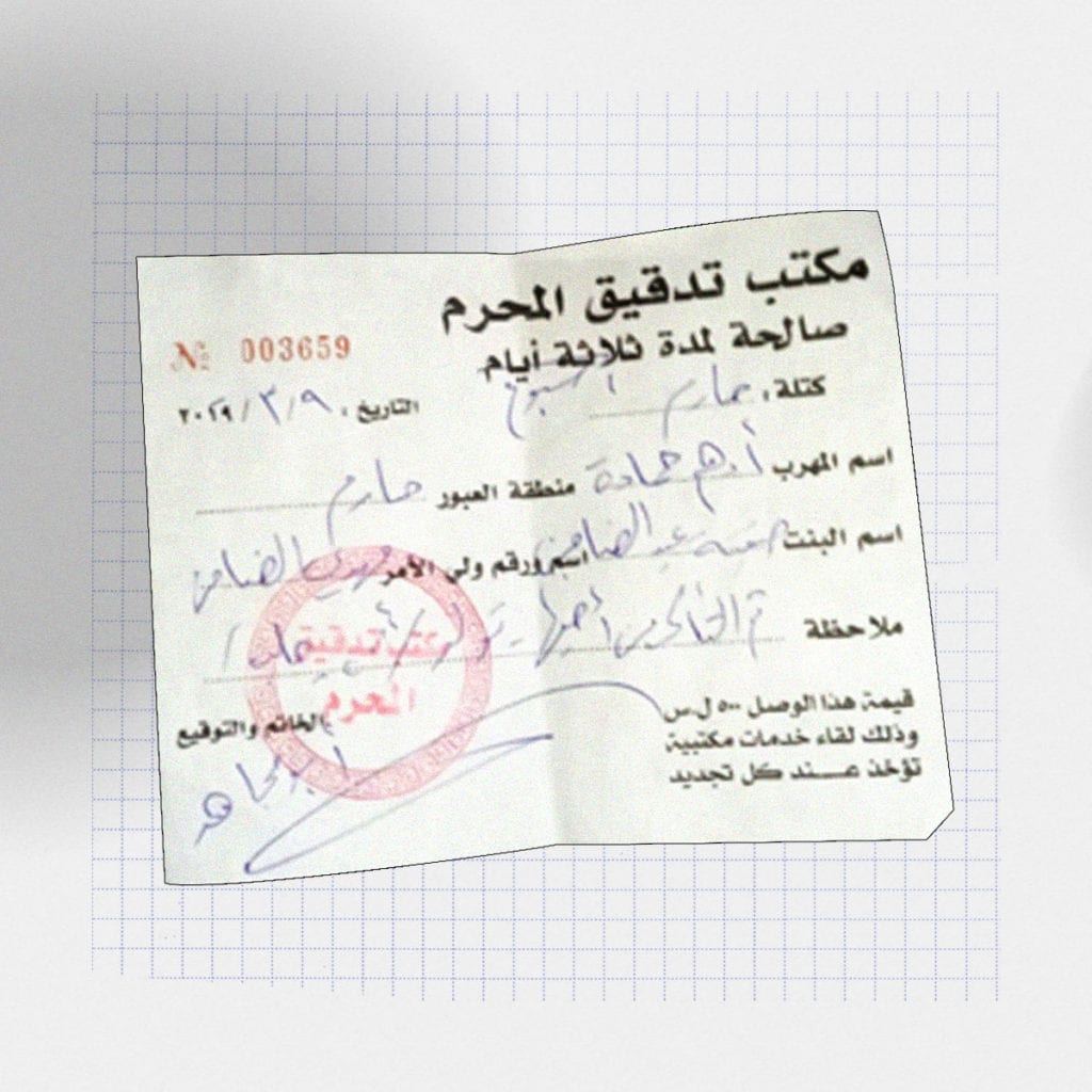 أعلنت الهيئة عن على النساء اللواتي يرغبن بدخول تركيا عند عدم وجود وثائق تؤكد صلتهن بالشخص المرافق لهن، شراء ورقة “المحرم” والتي باتت باباً جديداً من أبواب الإتاوات المالية والتضييق الاجتماعي، إذ يفرض على النساء الحصول عليها مقابل مبلغ ألف ليرة سورية (أي نحو 50 سنتاً بحسب معدل سعر الصرف في أيلول)، ويمنع دخول أي امرأة من دون هذه الورقة وهذا يعرضها للاعتقال ريثما يحضر “ولي أمرها” ويتسلمها. هذا الأمر ضاعف من معاناة النساء ومن الاجحاف بحقهن.