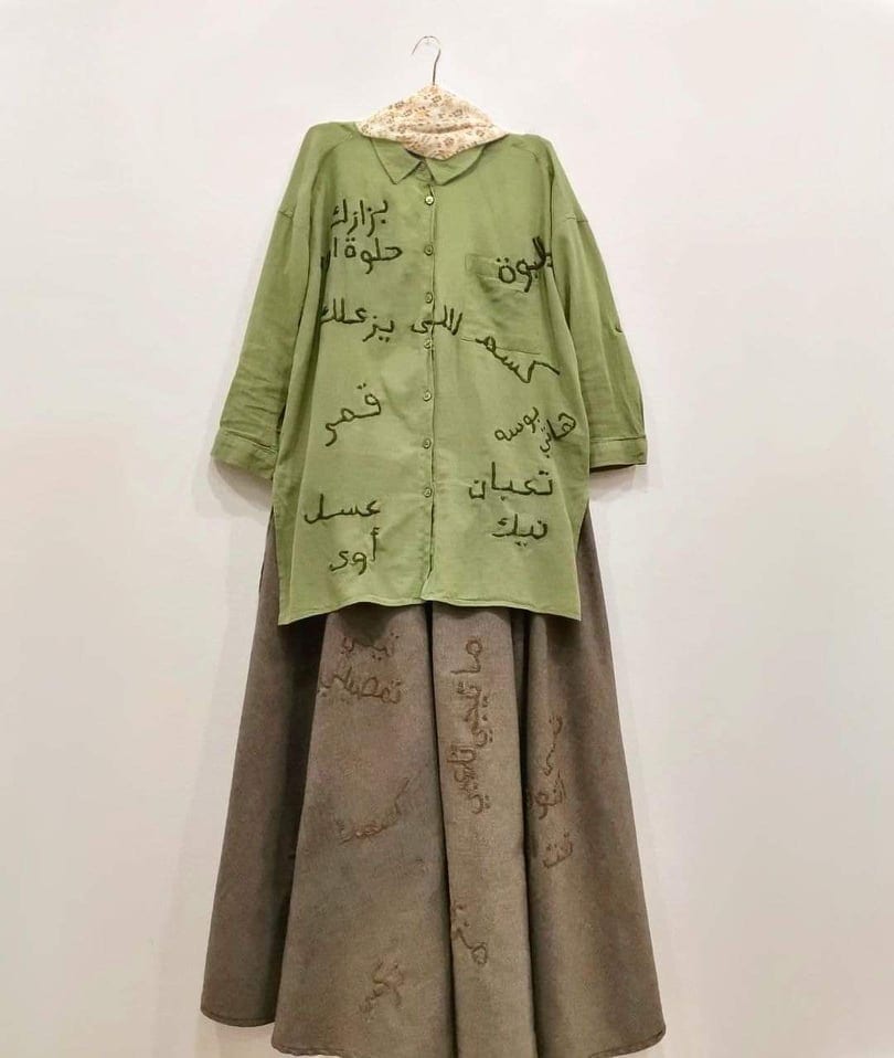 “لبوة”، “هاتي بوسة”، “أنتي عسل”… عبارات حاكتها سارة بالخيط على رداء نسائي لتناهض به التحرش، وما تتعرض له النساء في مصر من عنف لفظي وجنسي.