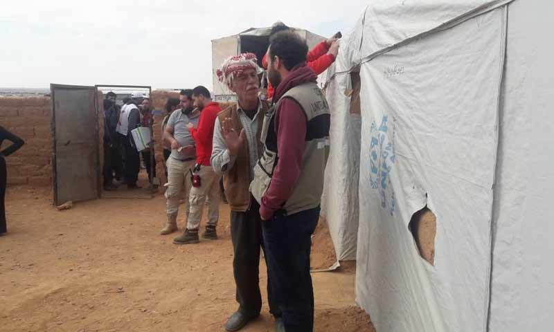 مخيم الركبان الحدودي أثناء دخول القافلة الأممية تشرين الثاني 2018 (صفحة حمزة بطلنا طالبت “هيئة العلاقات العامة والسياسية” في مخيم الركبان بوضعه على لوائح الأمم المتحدة، في حال غياب…