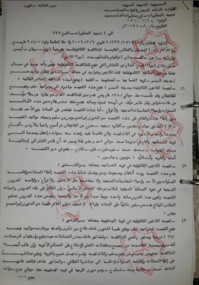 كشفت وثيقة رسمية عن متابعة مخابرات النظام لنشاط الكنائس ومراقبة رجال الدين القائمين عليها، وتقييمهم من ناحية “السمعة” والتوجه السياسي، فضلا عن الوضع القانوني والمادي والتعليمي. الوثيقة التي حصلت عليها…